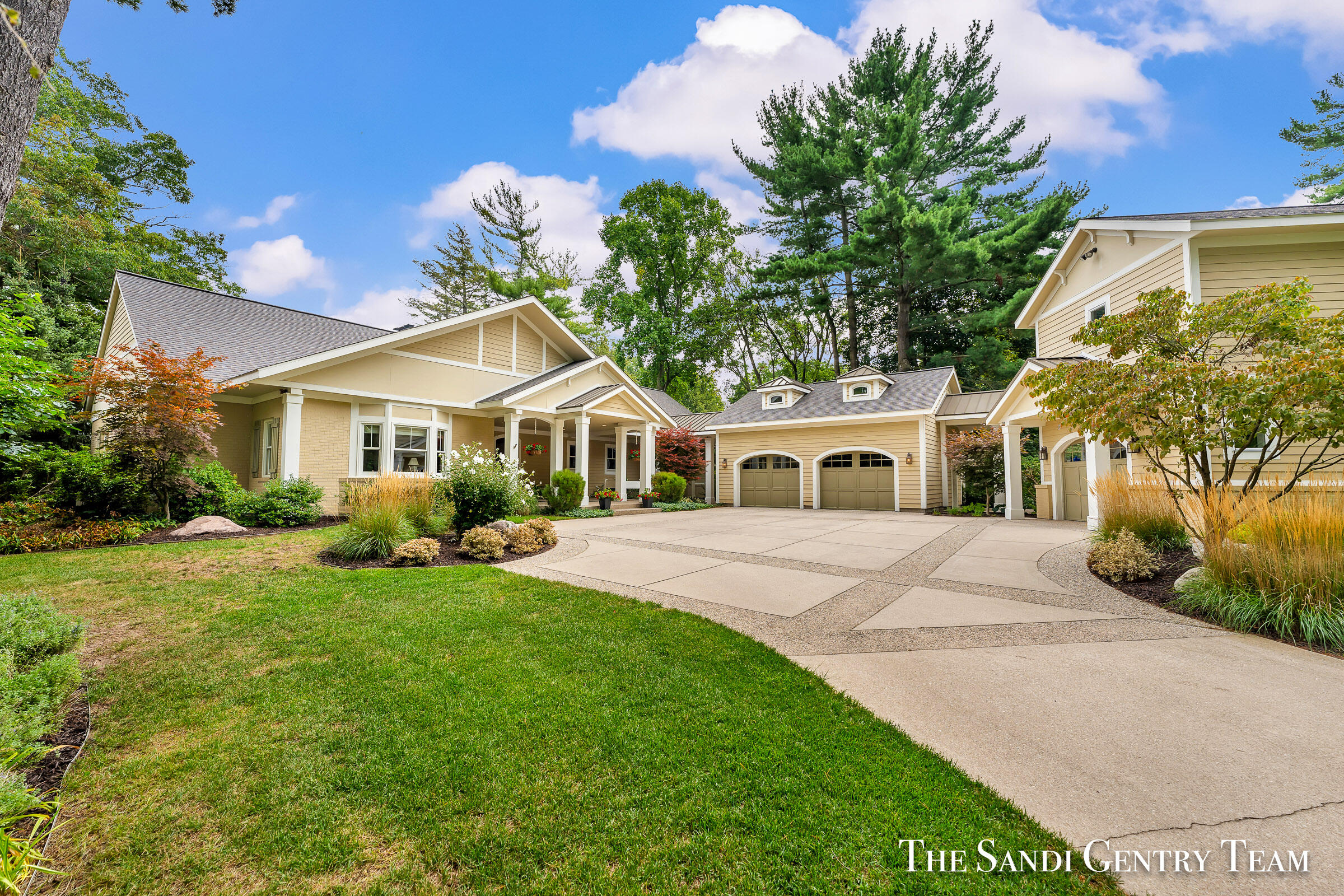 Nestled along nearly 115 feet of pristine Spring Lake shoreline, this exceptional waterfront home is a true retreat--where every detail has been thoughtfully designed to celebrate lakeside living. Offering nearly 5,000 square feet of refined living space, 4 bedrooms, and 3.5 bathrooms, this one-of-a-kind property seamlessly blends timeless elegance, modern comfort, and the natural beauty of its surroundings. From the moment you step into the foyer, you're greeted by breathtaking lake views through floor-to-ceiling windows that bathe the main level in natural light. Graceful architectural details--including rich solid hardwood floors, elegant arches, soaring curved ceiling--create a sense of sophistication and warmth throughout. The formal living room, anchored by a dramatic two-way fireplace and framed by a wall of glass, invites you to relax and take in panoramic water views. At the heart of the home is a gourmet kitchen, thoughtfully crafted for both form and function. It features custom wood cabinetry, sleek granite countertops, glass tile accents, and high-end stainless-steel appliances. Just off the kitchen, a cozy sitting area with slate flooring and office nook opens to a serene screened-in porch an ideal space for morning coffee or evening gatherings. Step outside to your own private lakeside oasis, where a beautifully designed patio, spacious deck, and inviting fire pit area create the perfect setting for entertaining or simply unwinding as the sun sets over the water. The primary suite offers a peaceful sanctuary with an en-suite bath and tranquil lake views providing the perfect place to begin and end each day.The walkout lower level adds even more versatility, complete with a guest suite, expansive family room, kitchenette, ample storage, and an acoustically insulated theatre/music room or office space. The deep-water dock and boat lift make lake access effortless, whether you're spending the day on the water or simply enjoying the view from shore.