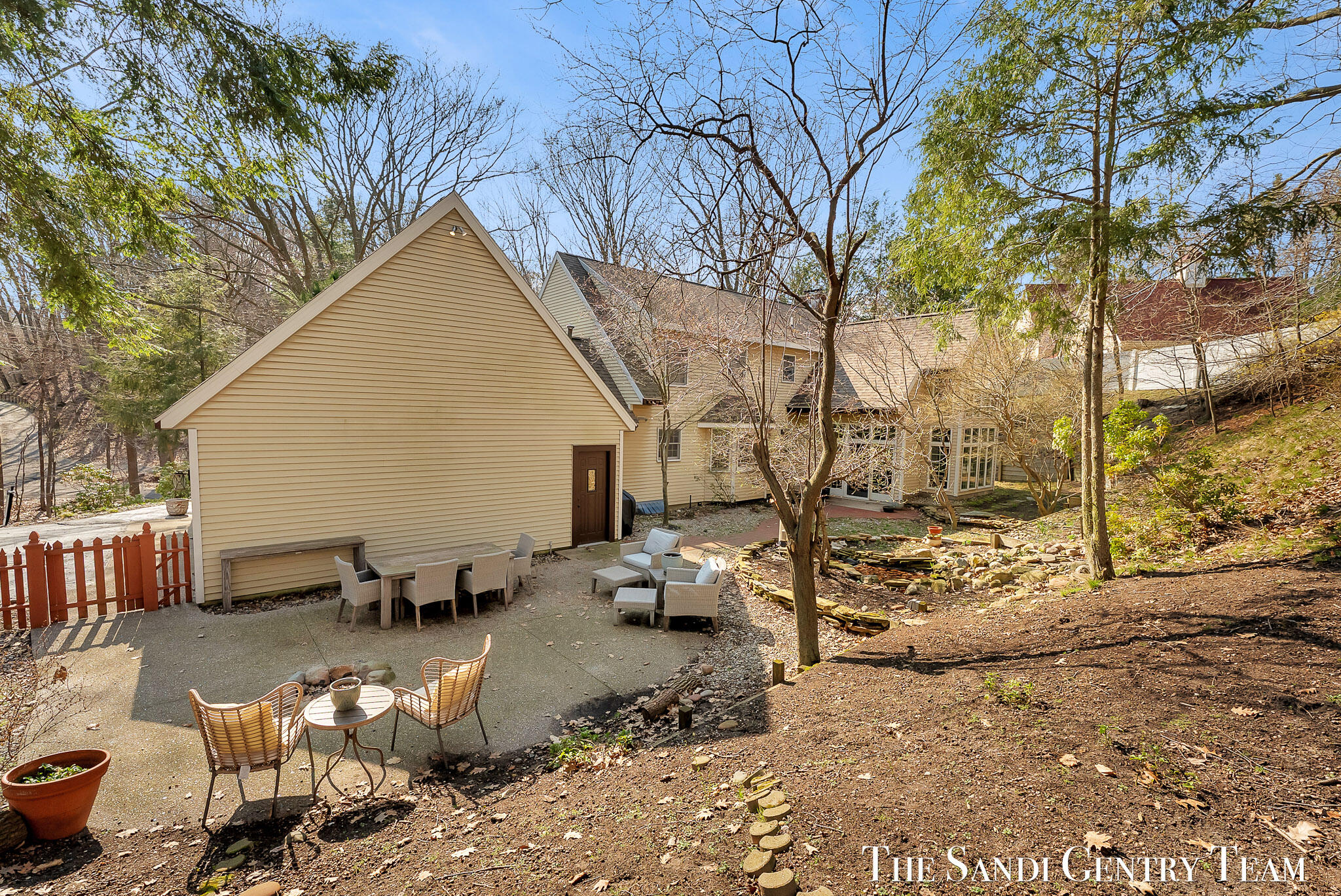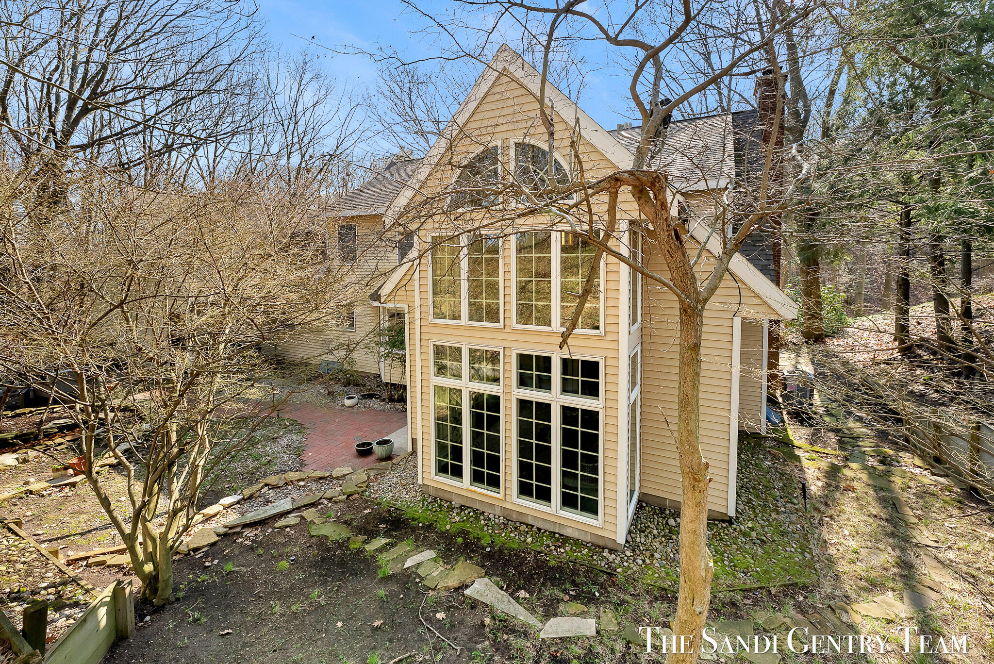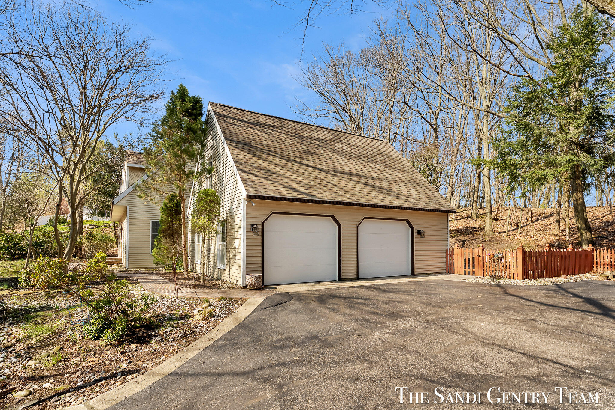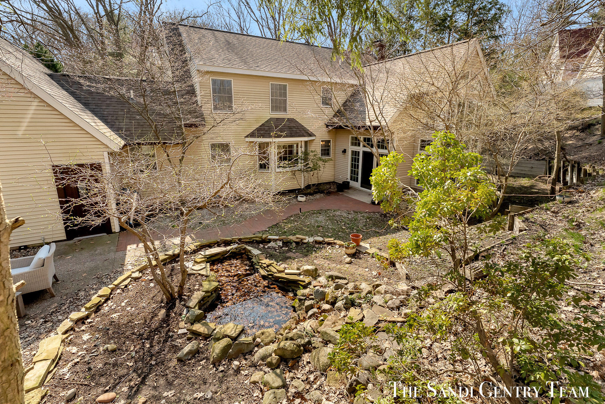 Tucked into a peaceful, wooded setting on 2.7 acres, this inviting Colonial offers a rare blend of privacy and natural beauty, along with access to Lake Michigan through the desirable Stickney Woods. With over 2,600 sq ft, this 3-bed, 2.5-bath home features thoughtfully designed living spaces that balance comfort and functionality. As you step inside, you're welcomed into a bright living room anchored by a striking, darker-toned fireplace that adds warmth and character. Large windows fill the space with natural light, and the layout flows seamlessly into the dining area, creating an ideal setting for both everyday living and entertaining. From there, the home opens into the large, updated kitchen, where generous quartz countertops, rich cabinetry, and a spacious island provide both style and function. The kitchen transitions effortlessly into the family room, offering a comfortable gathering space with a 2nd gas fireplace and an inviting atmosphere. French sliding doors lead you into one of the home's most impressive features, the extended living area. This stunning space is defined by soaring cathedral ceilings and a dramatic wall of windows that flood the room with natural light and showcase the surrounding wooded landscape. It's a true retreat within the home, perfect for relaxing or hosting larger gatherings. Additional sliding doors extend the living space outdoors to a patio area, ideal for enjoying the serene setting. Upstairs, the primary suite offers a peaceful and private retreat, featuring vaulted ceilings, soft natural light, and a spacious layout that feels both open and relaxing. Thoughtful architectural details, including angled ceilings and cozy window nooks, add character while creating inviting spaces to unwind. The en-suite bath has been beautifully updated with a clean, modern look, featuring a warm wood vanity, sleek fixtures, and a stunning tiled walk-in shower with a glass enclosure. The finishes strike a perfect balance between contemporary style and everyday comfort. A unique overlook connects the upper level to the home's main living area below, enhancing the sense of openness while maintaining separation and privacy. 2 additional bedrooms are well-sized and filled with natural light, complemented by an updated bathroom with cohesive, modern finishes. The lower level is your canvas, offering endless potential for additional living space, recreation, or customization to fit your needs. Outside, multiple gathering areas, including a patio with space for seating, a fire pit and a decor pond, create the perfect environment for entertaining or unwinding in nature. The setting is quiet and secluded, yet part of a welcoming community with private Lake Michigan access. This home blends classic Colonial charm with bright, open living spaces and a setting that truly feels like an everyday getaway.