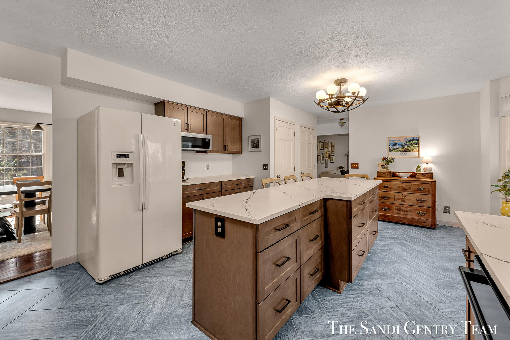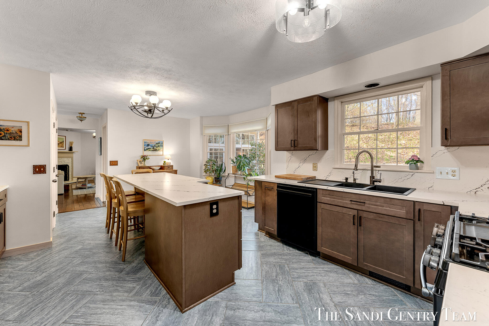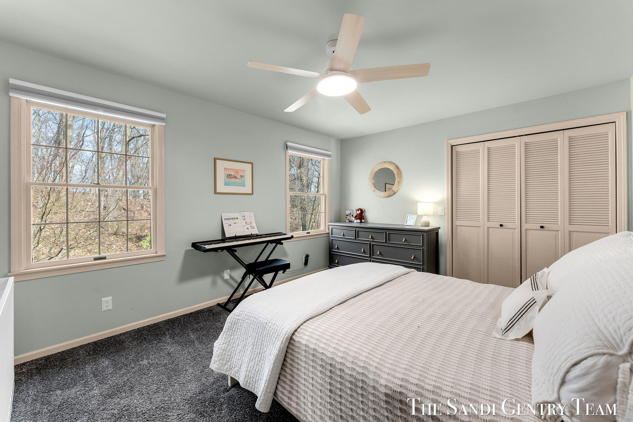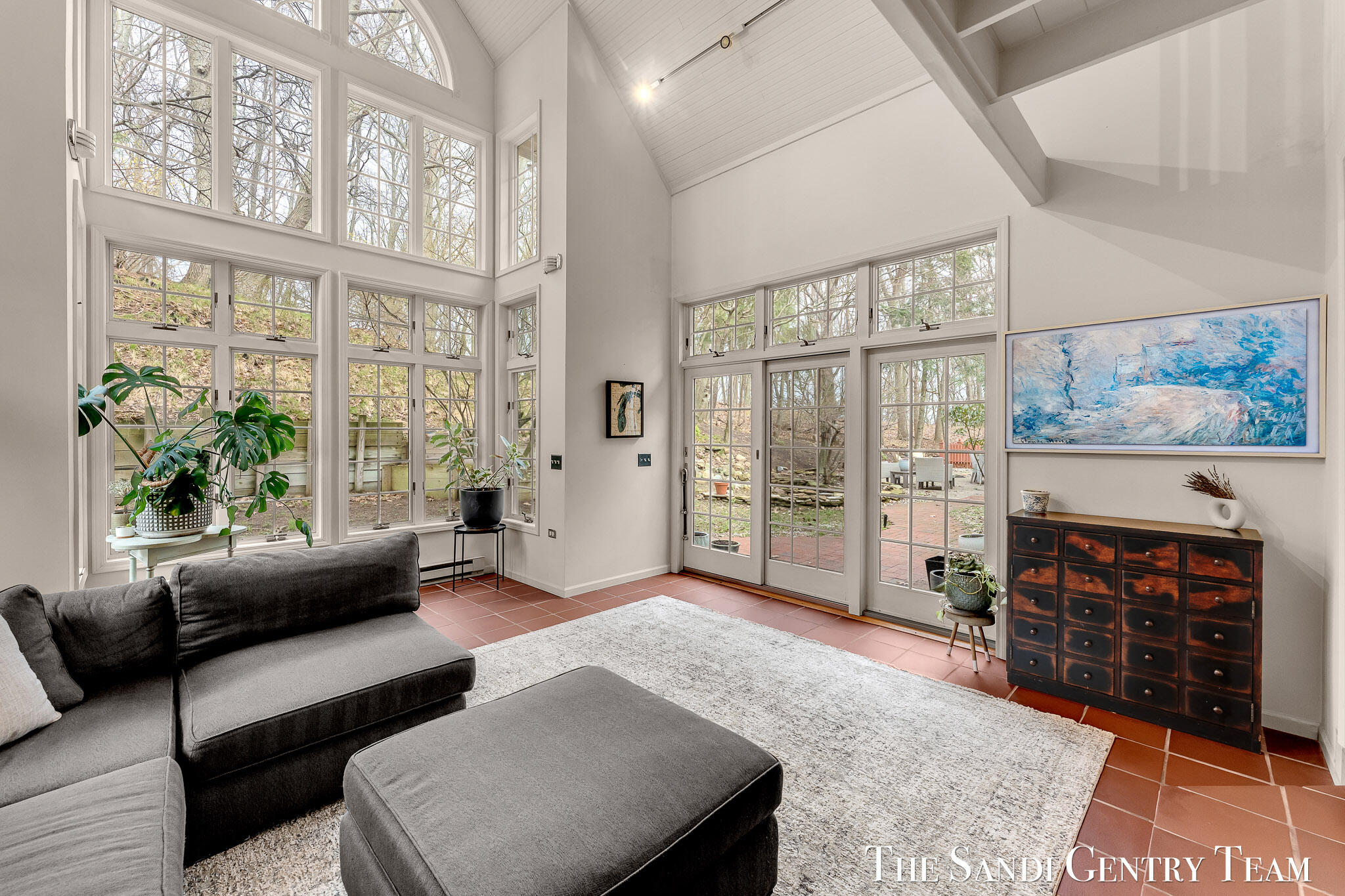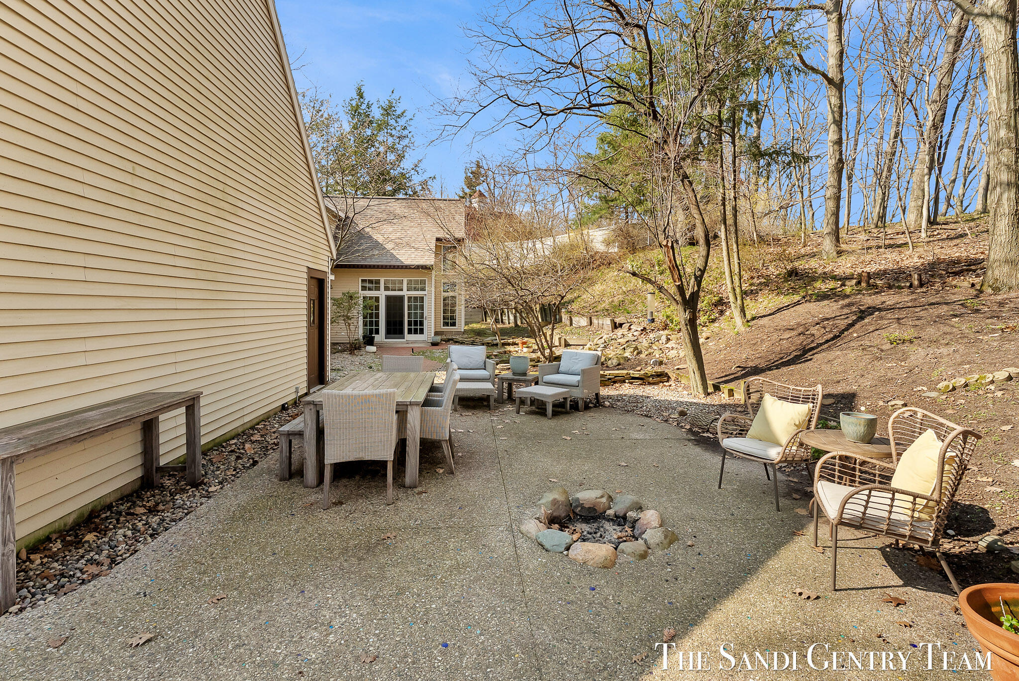 Tucked into a peaceful, wooded setting on 2.7 acres, this inviting Colonial offers a rare blend of privacy and natural beauty, along with access to Lake Michigan through the desirable Stickney Woods. With over 2,600 sq ft, this 3-bed, 2.5-bath home features thoughtfully designed living spaces that balance comfort and functionality. As you step inside, you're welcomed into a bright living room anchored by a striking, darker-toned fireplace that adds warmth and character. Large windows fill the space with natural light, and the layout flows seamlessly into the dining area, creating an ideal setting for both everyday living and entertaining. From there, the home opens into the large, updated kitchen, where generous quartz countertops, rich cabinetry, and a spacious island provide both style and function. The kitchen transitions effortlessly into the family room, offering a comfortable gathering space with a 2nd gas fireplace and an inviting atmosphere. French sliding doors lead you into one of the home's most impressive features, the extended living area. This stunning space is defined by soaring cathedral ceilings and a dramatic wall of windows that flood the room with natural light and showcase the surrounding wooded landscape. It's a true retreat within the home, perfect for relaxing or hosting larger gatherings. Additional sliding doors extend the living space outdoors to a patio area, ideal for enjoying the serene setting. Upstairs, the primary suite offers a peaceful and private retreat, featuring vaulted ceilings, soft natural light, and a spacious layout that feels both open and relaxing. Thoughtful architectural details, including angled ceilings and cozy window nooks, add character while creating inviting spaces to unwind. The en-suite bath has been beautifully updated with a clean, modern look, featuring a warm wood vanity, sleek fixtures, and a stunning tiled walk-in shower with a glass enclosure. The finishes strike a perfect balance between contemporary style and everyday comfort. A unique overlook connects the upper level to the home's main living area below, enhancing the sense of openness while maintaining separation and privacy. 2 additional bedrooms are well-sized and filled with natural light, complemented by an updated bathroom with cohesive, modern finishes. The lower level is your canvas, offering endless potential for additional living space, recreation, or customization to fit your needs. Outside, multiple gathering areas, including a patio with space for seating, a fire pit and a decor pond, create the perfect environment for entertaining or unwinding in nature. The setting is quiet and secluded, yet part of a welcoming community with private Lake Michigan access. This home blends classic Colonial charm with bright, open living spaces and a setting that truly feels like an everyday getaway.